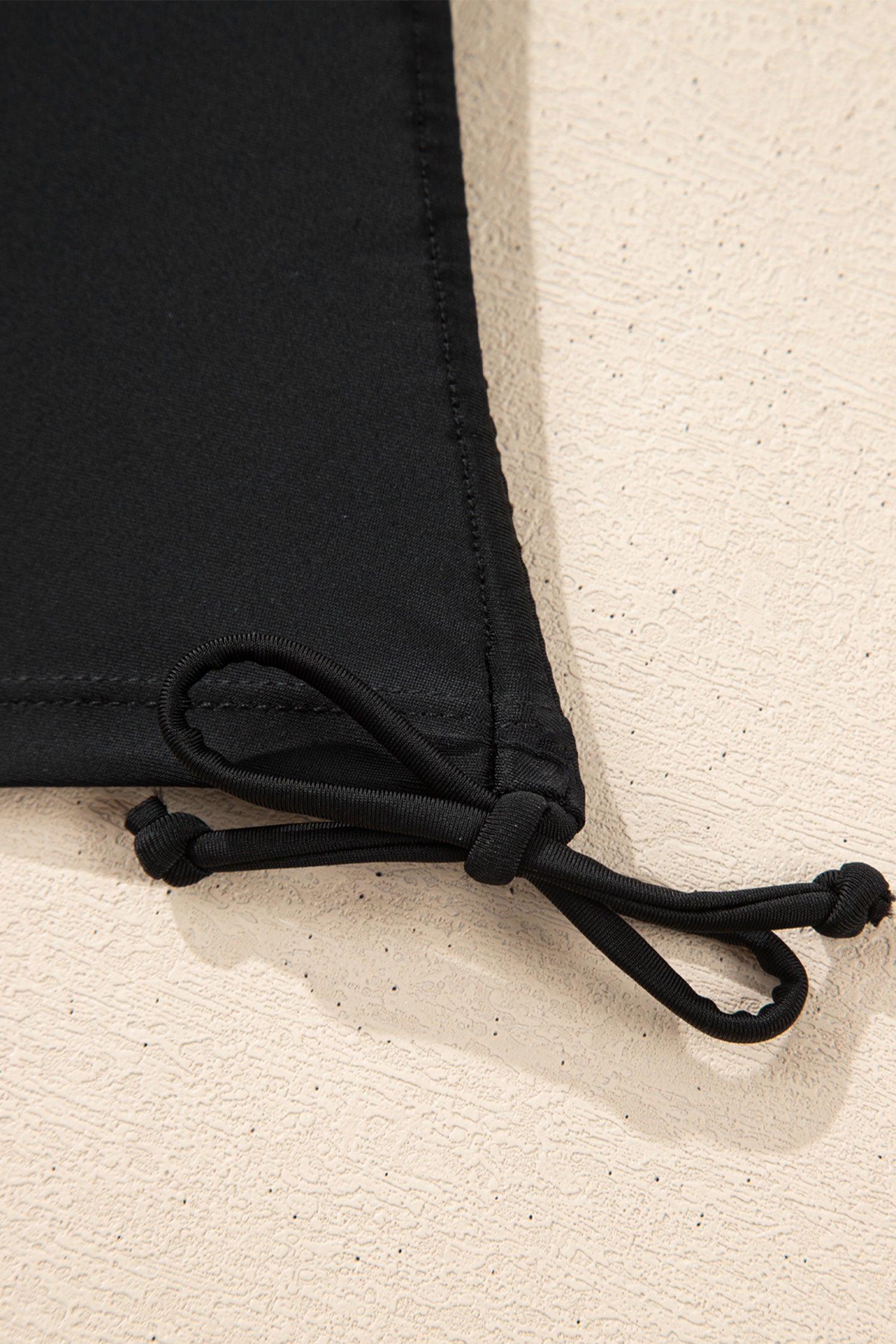 It has padded cups, adjustable straps, and drawstring at side.