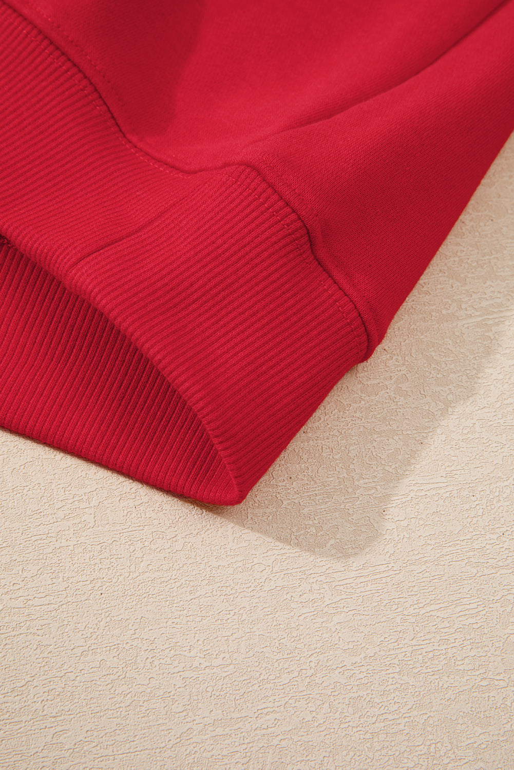 Racing Red Solid Crew Neck Drop Shoulder Plus Size Sweatshirt