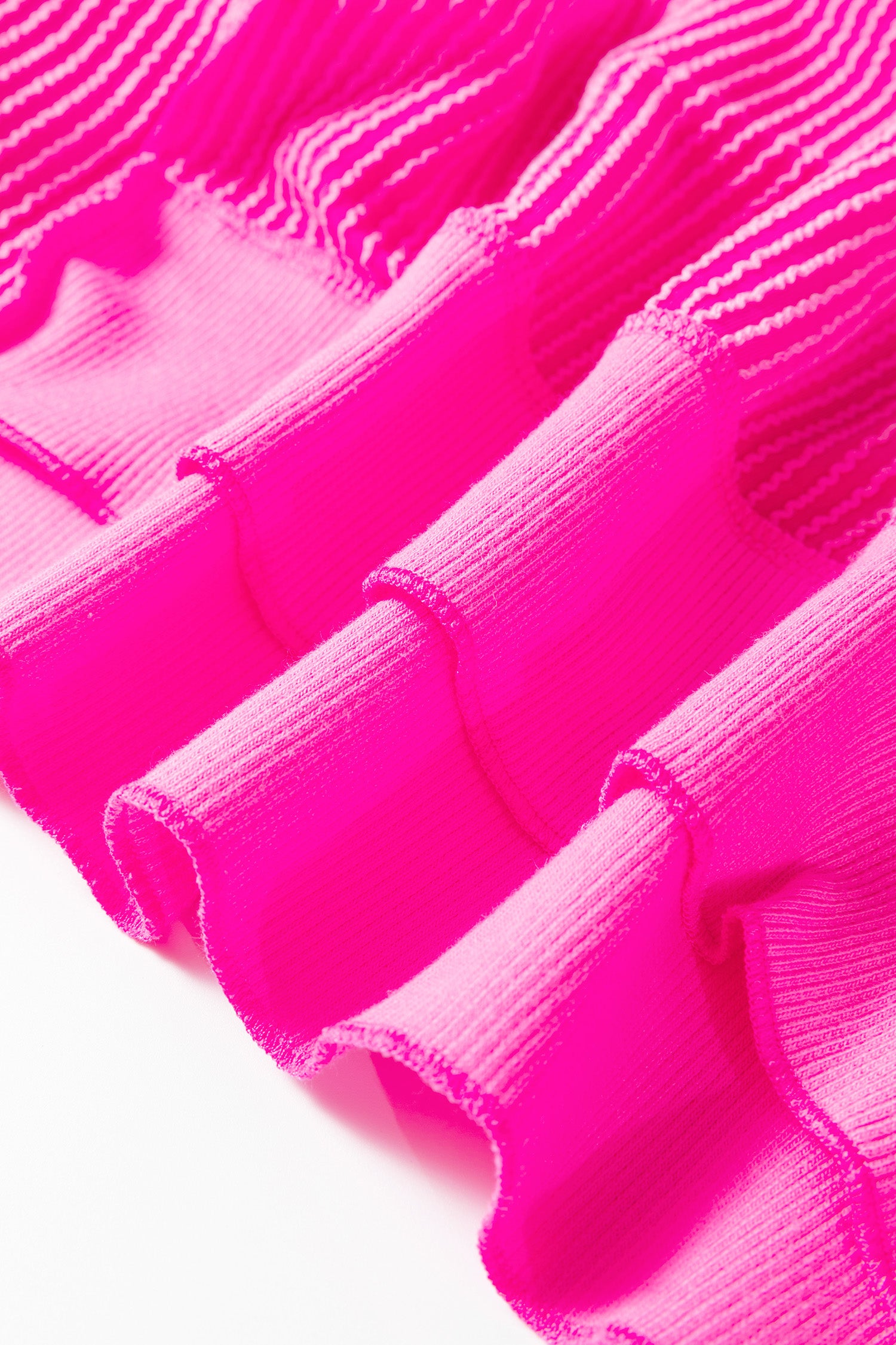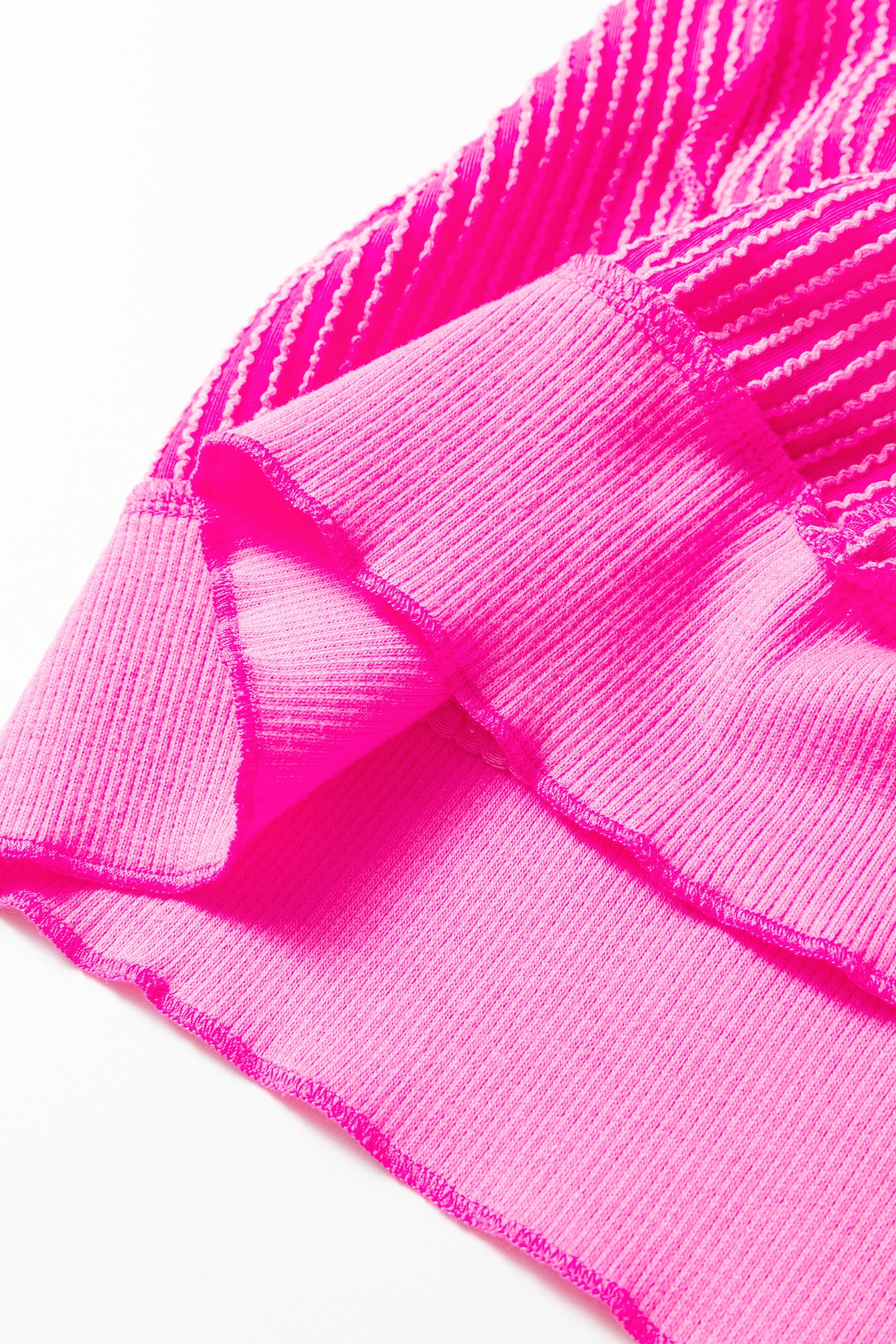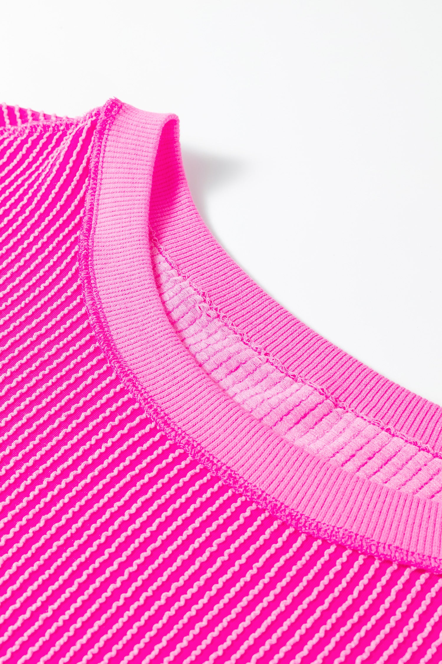 Rose Red Drop Shoulder Uneven Hem Plus Size Twisted Rib Top